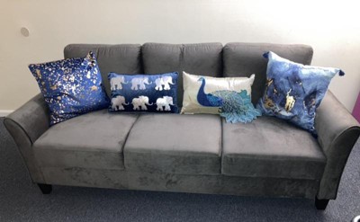 I think this little couch is perfect for small apartments, especially those with a winding staircase that are hard to get furniture in and out of. It was easy to assemble and doesn’t weigh a lot. I wouldn’t recommend for long-term use but it is good for providing extra seating. I decorated it (to make it pop) with pillows I found on target.com.