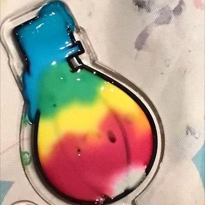 The green bottle broke at the neck when we first opened it so we couldn’t use it. The nozzles on the paint bottles were big so the little hands would squeeze once and the project was flooded with the paint. The free styling projects are not for little ones. Cannot freehand trace or draw objects to fill. Projects look like blended paint blotches.