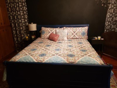 Colors are exact match to my bedroom décor. Love the king size quilt which is large enough to serve as a bedspread on my queen sized storage bed.
