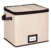 If you're searching for a thoughtful and distinctive gift for newlyweds or new homeowners, look no further than this elegant stemware storage case. It’s a practical yet refined present that will be appreciated whenever they host gatherings or celebrate special occasions. The clear ID card slot and neutral flax color with brown trim not only help with easy identification and organization but also blend seamlessly into any home décor. Measuring 12.5"" W x 9"" L x 11.5"" H with 3” compartments, this versatile case provides ample space for keeping 12 champagne flutes or other delicate glassware safe from harm. With our 100% satisfaction guarantee, you can confidently add this beautiful and functional item to your cart as a perfect gift or a smart addition to your own home storage solutions."