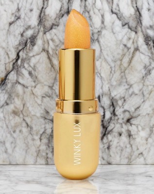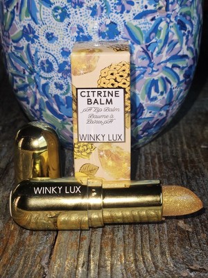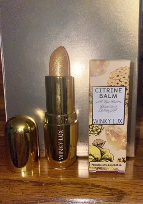 The Winky Lux Citrine Balm is a great grab and go pH color changing lip balm. The packaging and presentation is fantastic: the box it comes in is beautiful (any crystal lovers?) and the gold container that holds the balm itself is aesthetically pleasing, being an accessory to any outfit. The balm contains gold shimmer encased in a clear base to create pure pink magic. When applying the balm, it is very easy and smooth. The color change happens quickly and is fun to watch. The balm is very hydrating for me due to the ceramides; I have worn this balm out for a night on the town, date nights to restaurants, and even around the house. It lasts for hours without having to frequently reapply. There is no transfer. It is also tasteless and odorless. My lips are very sensitive to many different ingredients, but I did not have any reaction to this balm. Carrying the balm is convenient in that it is small enough to fit anywhere while still giving the feel of a full size product. This product works great with a makeup or no makeup look and is perfect for use by anyone at anytime.