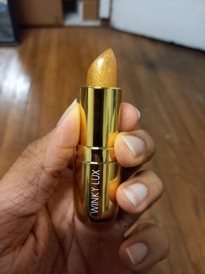 I recently had the opportunity to try the Winky Lux Citrine Balm, and I have to say it was a unique and fun experience. As someone who loves trying new beauty products, especially lip balms and lipsticks, I was excited to see how this balm would work for me. The packaging immediately caught my attention. It's eye-catching, with bright and pretty colors, and the gold tube makes it feel fancy and luxurious. I loved the attention to detail with the floral and citrus designs on the box. It's a small touch, but it really makes the product feel like something special. When I opened the balm, I was surprised and impressed by how beautiful it looked. The balm itself is a glittery, golden color that almost looks too pretty to use. It has a sparkly, magical vibe to it, and it made me curious about how it would look on my lips. Even though it's gold in the tube, it actually changes color when applied.