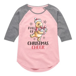 Disney Winnie The Pooh - Full of Christmas Cheer - Toddler & Youth Girls Raglan Graphic T-Shirt - Step into the Hundred Acre Wood with Winnie the Pooh graphic apparel—featuring Pooh, Tigger, Eeyore, and Piglet in cozy, nostalgic styles for all ages.