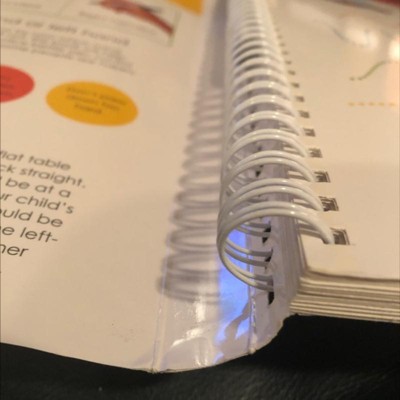 Great book and we love this brand, but I wish the cover was completely spiral bound too, like some other wipe off workbooks. The cover has a part that just hangs over the spiral binding and it already looks weak. We haven’t even used the book yet. I can see it getting damaged or completely breaking off with frequent use.