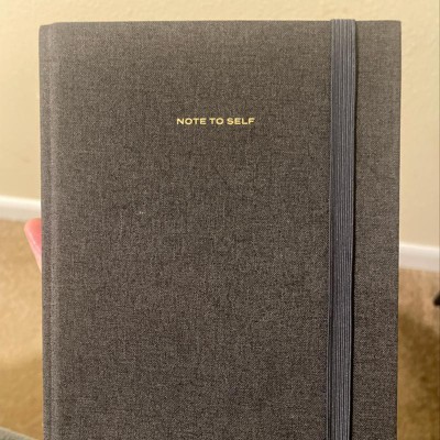 Wit & Delight Lined Journal Black Linen Note to Self: Hardcover Notebook with Elastic Closure, Pocket, Ribbon Marker, 160 Pages