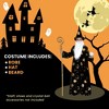 - COSTUME INCLUDES: This costume set includes fully detailed open front robe, hat, and beard. Staff and crystal ball accessories not included.