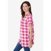 Flattering A-line silhouette enhances your figure and adds a touch of elegance. Charming allover check print adds a lively and cheerful vibe to your wardrobe. Faux button front detail brings a classic, polished look with zero hassle. Delicate front pleats offer subtle texture and feminine appeal. Comfortable scoop neckline perfect for relaxed, everyday wear. Generous 30" tunic length provides ideal coverage, making it perfect to pair with any bottoms. Soft cotton/polyester jersey knit ensures all-day comfort and easy care. Machine washable for stress-free maintenance and lasting freshness. Imported.