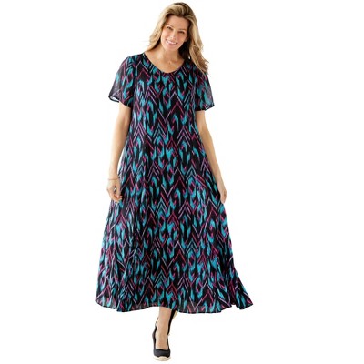 Feminine, plus size dress with a flattering V-neck that enhances your silhouette. Lightweight, cool crinkle fabric keeps you comfortable on warm days. Breezy, flared shape offers a relaxed and stylish fit for everyday wear. Easy to style with your favorite sandals for a ready-to-go look. Regular length: 51" for ideal coverage. Petite length: 48" perfect for smaller frames. Made from breathable rayon fabric. Machine washable for effortless care. Imported.