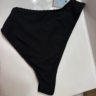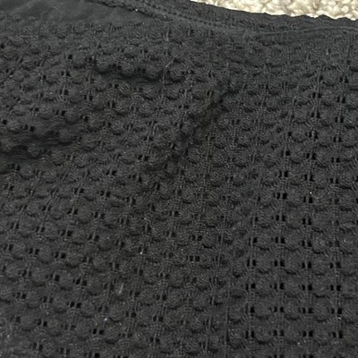 [This review was collected as part of a promotion.] I am wearing a size large in this black crochet bikini bottom by Shade and Shore. I really liked the feel of the material. This was listed as medium coverage but I felt like it was more full, which I was pleased with. I also love that it's classic black since finding a top will be easy to match. If your looking for a cute bottom then look no further and get this one and feel good about yourself! I received an incentive to write this review.
