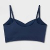 [This review was collected as part of a promotion.] I wanted to like this, as I'm generally a huge fan of All in Motion activewear. The bra fit true to size (I bought an XL, which is the size I wear in most sports bras and Target's in house bra lines), but the tightest part of the band is not where the seam is (see photo of inside). Because of this, and due to the fact that it's a longer length than a lot of sports bras, it rolls up on the bottom. Try it on at the store, or be prepared to return it if your back is not pure muscle.. That being said, it is ridiculously soft. So, so soft. And the blue is not as shiny as I expected, based on the website photos. I received an incentive to write this review.