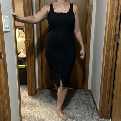Whether you're dressing for a casual event or aiming for a sophisticated look, this Knit Button-Front Midi Dress from A New Day™ is a perfect choice. Made from a fabric blend of recycled polyester, rayon, and spandex, this midi dress offers stretchy comfort. This sleeveless dress features a scoop neckline and has a front-button-down style for easy wear. Pair it with your choice of footwear and accessories to complete the ensemble.