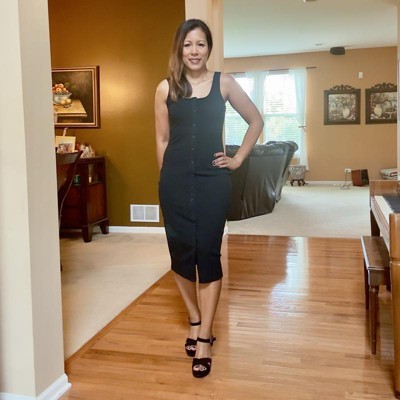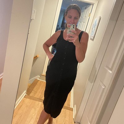 [This review was collected as part of a promotion.] I purchased this knit button down sleeveless dress made by a new day and am so impressed! I purchased in my usual size large and this fits me well and true to size. For reference I am 175 pounds and 5’9” tall. This dress is so flattering! It is midi length and hits just right. The straps are the perfect width to wear any bra and the material is so soft and doesnt cling to the body. The buttons and ribbed effect are slimming! I received an incentive to write this review.