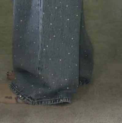 Infuse glam, throwback vibes into your denim collection with these Mid-Rise '90s Baggy Rhinestone Jeans from Universal Thread™. Dotted with tiny rhinestones on a light wash backdrop, these full-length jeans are made from midweight cotton-recycled cotton blend denim fabric with no stretch for all-day comfort and a structured feel. They are designed with a mid-rise silhouette and baggy legs for a relaxed, vintage-inspired fit, complete with a belt-loop waistband featuring zip fly and button closure and a classic five-pocket design for functional style.