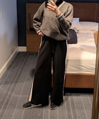 These are super comfy pants. They are traditional sweatshirt material but with a stylish wide leg. They are cozy and cute, but they aren’t especially functional because there are no pockets! I love the color so I’m keeping them but if they had pockets I’d buy multiple pairs in different colors. Also I haven’t laundered yet and I’m a little nervous about the possibility of shrinkage causing them to be too short in the future. (They are barely long enough now, but I have long legs and often have this problem with target pants.)