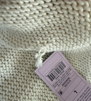 I bought this sweater in the store and loved it, wore it, and washed it (inside out on gentle cycle). After it dried, I saw two spots where the yarn was tied in a knot in the middle of the sweater (not on a seam) on the inside of the sweater. I also found an issue on the seam where the yarn isn't finished and can be pulled out easily. I ordered a white one online and checked it before removing tags and washing and it has one spot where the yarn is tied into a knot, also in the middle of the sweater. This one doesn't look like it will hold so I'm returning it. I've never seen anything like this before. It's really disappointing.