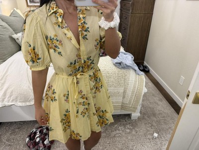 Women's Balloon Short Sleeve Mini Shirtdress - A New Day™ Yellow Floral M