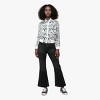 Really cute jacket. The print leans more Dalmatian than leopard IMO. Bought a 2X and it fits fine in the chest but the arms and shoulders are too tight for my big arms (19 inches). It is cropped but I have a short torso so it’s not too bad on me. Sadly it’s going back.
