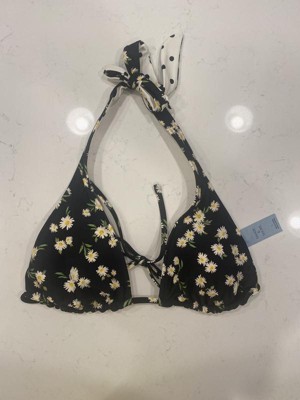 Very cute bikini top! Love the black with daisies and it’s reversible! White with black polka dots. My boyfriend loved it. Runs a bit small