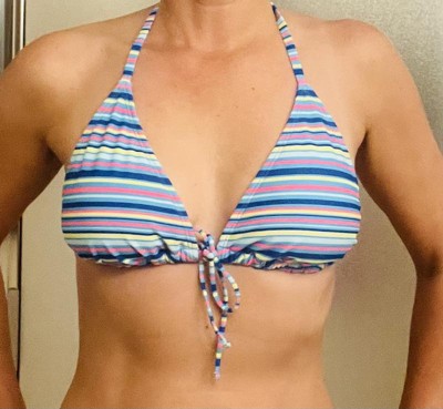 The striped bikini top from Wild Fable has vibrant colors that can mix and match with matching bikini bottom or other solid bottoms. The fabric feels like a luxury brand but is a great value. My daughter highly recommends.