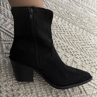 These Dallas Ankle Western Booties with Memory Foam Insole from Universal Thread™ bring cool Western style to your casual or dressier outfits. Made from polyester fabric with comfy lining, these Western ankle booties have memory foam insoles for all-day comfortable walking. Set on approximately 2.5-inch cone heels for a statement lift to your height, they close with side zippers for easy on and off.