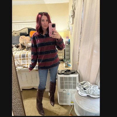 So glad I got these! I got them when shoes were on promotion and got 3 sizes bc I wasn’t sure which I’d need, in between 7.5-8 and the 8 was perfect! I for sure have super skinny calves and yes there is space here but I still love the way they look, I’ve tried other boots that had way more calf space so if you have skinny legs give them a try anyway! I love that they’re not to burgundy or brown and can go either way depending on what you wear. Can’t wait until it gets cool enough to wear some of these looks I’ve put together with them! For reference I’m 5’6, 136lbs