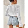 Women Crochet Sweater Lightweight Cropped Summer Tops Long Sleeve Hollow Out Knit Cover Up