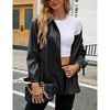 Women Faux Leather Shacket Moto Biker Shirts Loose Fit Blazer Long Sleeves Button Casual Jacket Black L