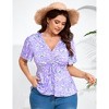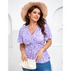 Women Plus Size Shirt V Neck Short Sleeve Blouse Peplum Floral Shirt Drawstring Tunic Top Ruffle Tops - 1 of 4