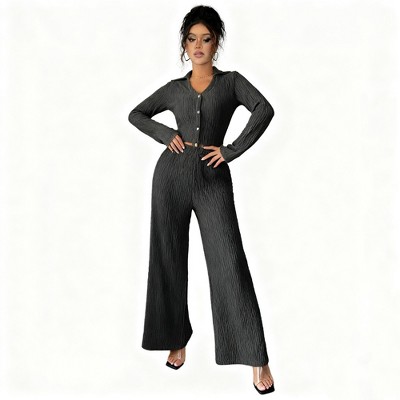 Women's 2-Piece Set Casual V-Neck Long Sleeve Crop Top And Long Pants Outfit