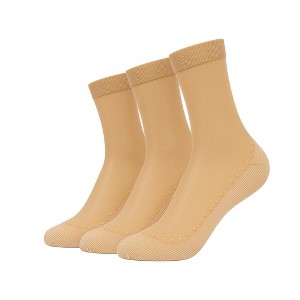 AWS/American Made Women’s 3- Pack Non-Slip Sheer Ankle Socks – Breathable Nylon with Cushioned Cotton Sole - Beige