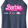 Barbie the Movie - Barbie Transportaion Vehicles - Juniors High Neck Tank Top - Step into the glamorous pink world of Barbie with our officially licensed graphic garments for the fashion-forward! Whether you dream of being a fashion designer, a mermaid princess, or a world-traveling explorer, our garments bring Barbie's world to life with vibrant colors and playful prints. Crafted with quality materials and attention to detail, each piece ensures comfort and durability for all-day play. Express your unique sense of style and imagination with our exclusive Barbie graphic apparel!