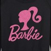 Women's - Barbie - Logo Pink Glitter Lightweight French Terry Wide Neck Long Sleeve Graphic Shirt - 2 of 4Women's - Barbie - Logo Pink Glitter Lightweight French Terry Wide Neck Long Sleeve Graphic Shirt - 3 of 4Women's - Barbie - Logo Pink Glitter Lightweight French Terry Wide Neck Long Sleeve Graphic Shirt - 4 of 4