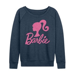 Women's - Barbie - Logo Pink Glitter Lightweight French Terry Wide Neck Long Sleeve Graphic Shirt - 2 of 4Women's - Barbie - Logo Pink Glitter Lightweight French Terry Wide Neck Long Sleeve Graphic Shirt - 3 of 4Women's - Barbie - Logo Pink Glitter Lightweight French Terry Wide Neck Long Sleeve Graphic Shirt - 4 of 4