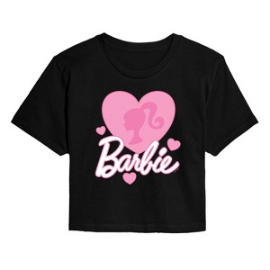 Barbie - Love Hearts - Juniors Cropped Short Sleeve Graphic T-Shirt - Step into the glamorous pink world of Barbie with our officially licensed graphic garments for the fashion-forward! Whether you dream of being a fashion designer, a mermaid princess, or a world-traveling explorer, our garments bring Barbie's world to life with vibrant colors and playful prints. Crafted with quality materials and attention to detail, each piece ensures comfort and durability for all-day play. Express your unique sense of style and imagination with our exclusive Barbie graphic apparel!