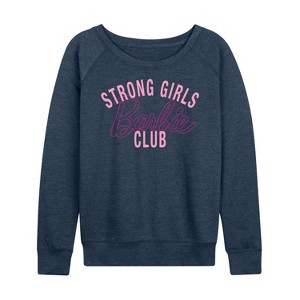Women's - Barbie - Strong Girls Club Lightweight French Terry Wide Neck Long Sleeve Graphic Shirt - 1 of 4