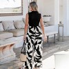 Elevate your style with this stunning monochrome jumpsuit featuring an eye-catching abstract print. The sleeveless bodice with a high neckline exudes sophistication, while the wide-leg pants create a flattering silhouette. Perfect for both casual and dressy occasions, this versatile piece will become a staple in your wardrobe. Product code: DAA13E5M003CA