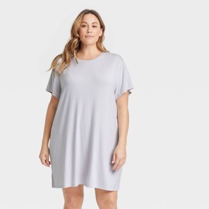 Women's Cloud Knit Pajama T-Shirt Dress - Auden™ Gray Stripe 1X: Relaxed Fit, Modal-Spandex Blend, Short Sleeve Nightgown