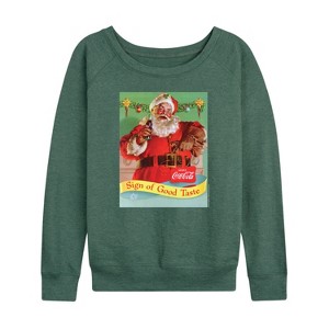 Women's - Coca-Cola - Sip Of Good Taste Vintage Coca Cola Santa Lightweight French Terry Wide Neck Long Sleeve Graphic Shirt - 1 of 4