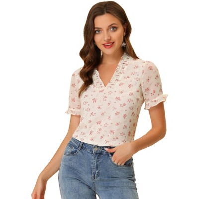 Women's Crochet Trim V-Neck Blouse Shirt - LASCANA
