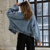 Women's Cropped Denim Jacket - Oversized Button-Front Jacket with Pockets for Casual Layered Wear Blue S