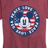 Disney - Americana - Mickey Peace Love Usa - Women's Short Sleeve Graphic T-Shirt - Add a touch of magic to your wardrobe with this graphic apparel featuring iconic Disney designs. Showcasing beloved characters and classic imagery, each piece combines nostalgic charm with modern style—perfect for Disney fans of all ages. Whether you're headed to the parks or just adding whimsy to your everyday look, these graphics bring the magic to life.