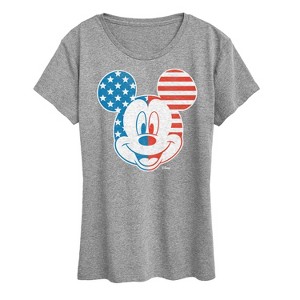 Disney - Americana - Mickey Face Stars And Stripes - Women's Short Sleeve Graphic T-Shirt - Add a touch of magic to your wardrobe with this graphic apparel featuring iconic Disney designs. Showcasing beloved characters and classic imagery, each piece combines nostalgic charm with modern style—perfect for Disney fans of all ages. Whether you're headed to the parks or just adding whimsy to your everyday look, these graphics bring the magic to life.