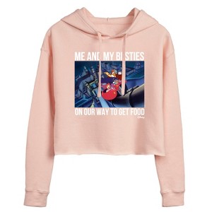 Disney - Darkwing Duck - Me & My Bestie Getting Food - Juniors Cropped Pullover Hoodie - Add a touch of magic to your wardrobe with this graphic apparel featuring iconic Disney designs. Showcasing beloved characters and classic imagery, each piece combines nostalgic charm with modern style—perfect for Disney fans of all ages. Whether you're headed to the parks or just adding whimsy to your everyday look, these graphics bring the magic to life.