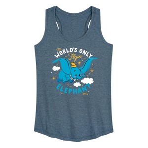 Disney - Dumbo - The World's Only Flying Elephant - Women's Racerback Tank Top - Celebrate the essence of Disney's Disney with officially licensed apparel featuring unique designs crafted exclusively by Hybrid Apparel. Each piece brings beloved characters, iconic imagery, and memorable moments to life, offering Disney fans a one-of-a-kind way to showcase their passion.