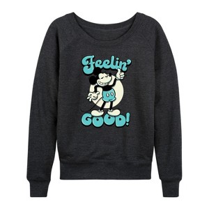 Women's - Disney - Feelin' Good Lightweight French Terry Wide Neck Long Sleeve Graphic Shirt - 1 of 4