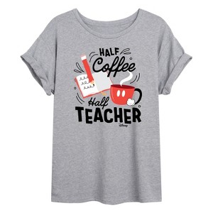 Women's - Disney - Half Coffee Half Teacher Oversized Graphic T-Shirt - 1 of 4
