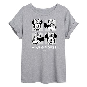 Disney - Mickey & Friends - Minnie Mouse - Black & White Photo Grid - Women's Oversized T-Shirt - Add a touch of magic to your wardrobe with this graphic apparel featuring iconic Disney designs. Showcasing beloved characters and classic imagery, each piece combines nostalgic charm with modern style—perfect for Disney fans of all ages. Whether you're headed to the parks or just adding whimsy to your everyday look, these graphics bring the magic to life.