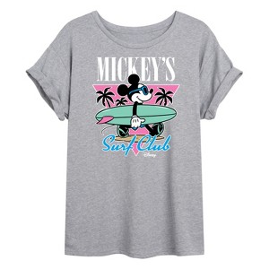 Disney - Mickey & Friends - Mickey's Surf Club - Miami Retro Colors - Women's Oversized T-Shirt - Add a touch of magic to your wardrobe with this graphic apparel featuring iconic Disney designs. Showcasing beloved characters and classic imagery, each piece combines nostalgic charm with modern style—perfect for Disney fans of all ages. Whether you're headed to the parks or just adding whimsy to your everyday look, these graphics bring the magic to life.