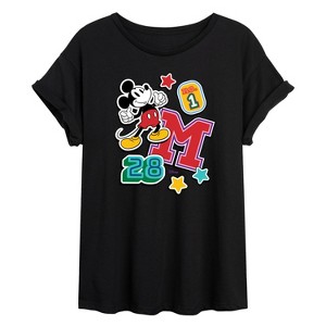 Disney - Mickey Mouse - Stitched Collegiate Patches - Women's Oversized T-Shirt - Add a touch of magic to your wardrobe with this graphic apparel featuring iconic Disney designs. Showcasing beloved characters and classic imagery, each piece combines nostalgic charm with modern style—perfect for Disney fans of all ages. Whether you're headed to the parks or just adding whimsy to your everyday look, these graphics bring the magic to life.
