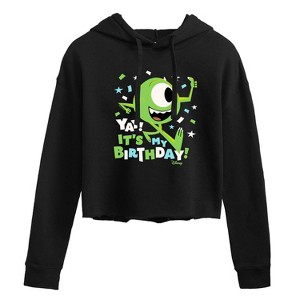 Women's - Disney - Mike Yay It's My Birthday Cropped Graphic Hoodie - 1 of 4